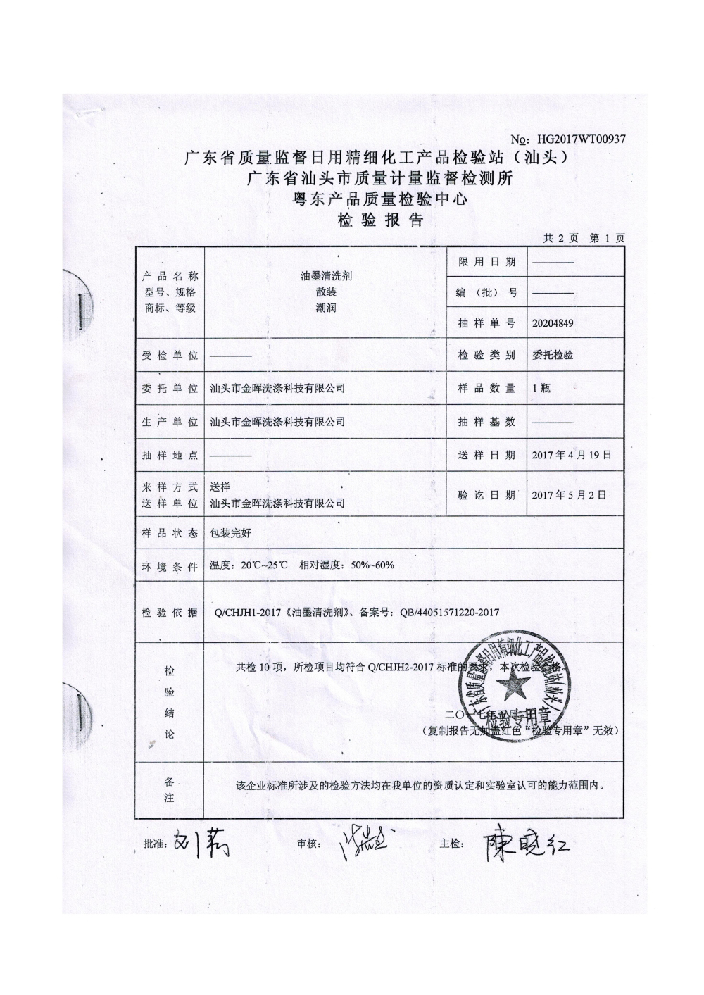 油墨清洗劑檢測報告